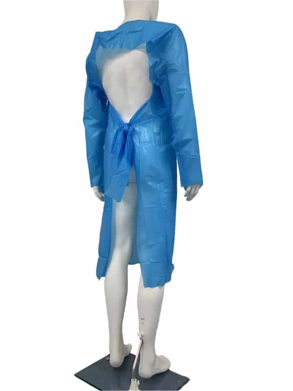 Made of 100% non-woven fabric, this over-the-head, open-back design is lightweight, breathable, and is easy to put on and take off. Features include tie closures at the waist, long sleeves, and thumb hooks. This non-sterile gown is intended for one-time use and should be discarded immediately after use.