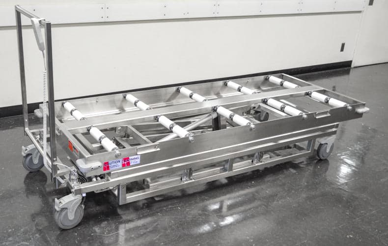 • Great for making the work loads lighter by being able to elevate all size bodies to most five tier storage rack heights.