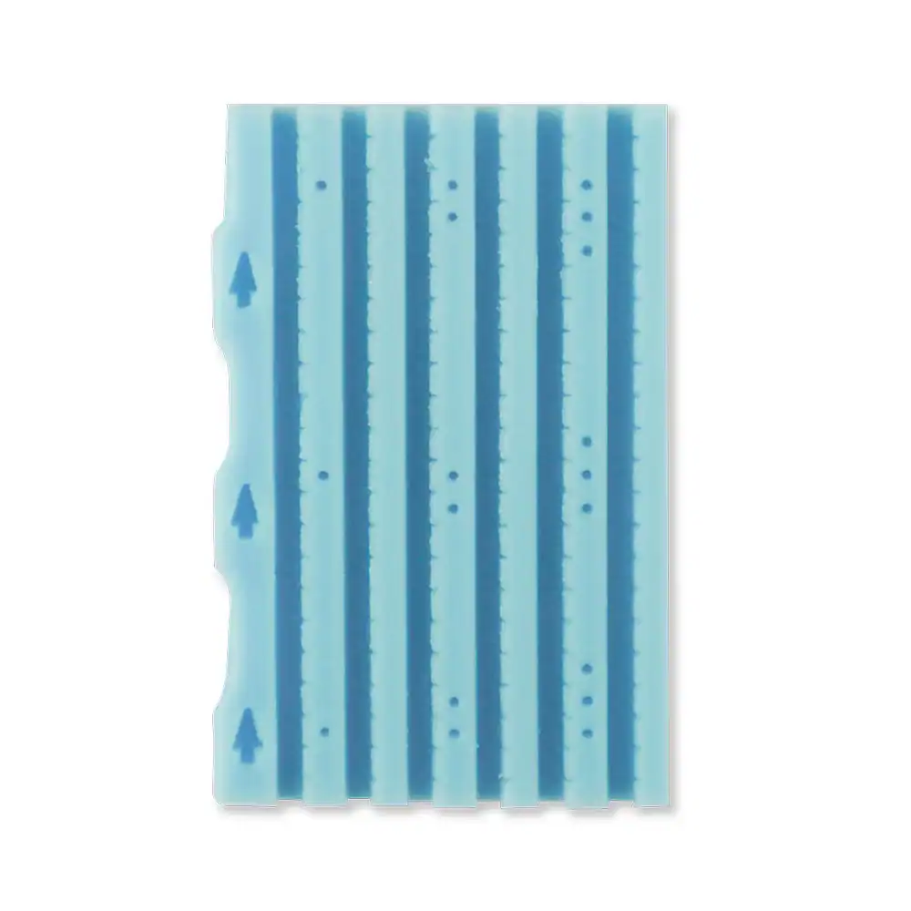 To support accurate core tracking and orientation, Each BxChip® includes embossed markings. Directional arrows indicate proximal and distal ends of the tissue, while dot patterns uniquely identify each core position from left to right.