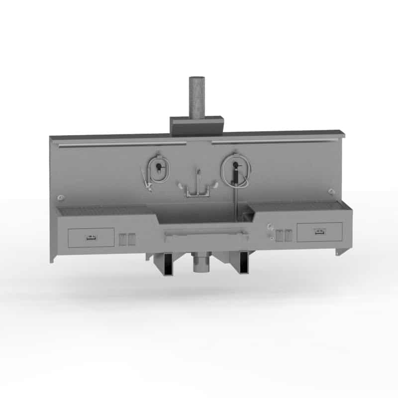 Tags: 1036, autopsy sink, autopsy sinks, center sink, double sink, embalming station, scrub sink, scrub sinks, sink, sinks, station, wall mount embalming station, WALL MOUNT STATION, workstation